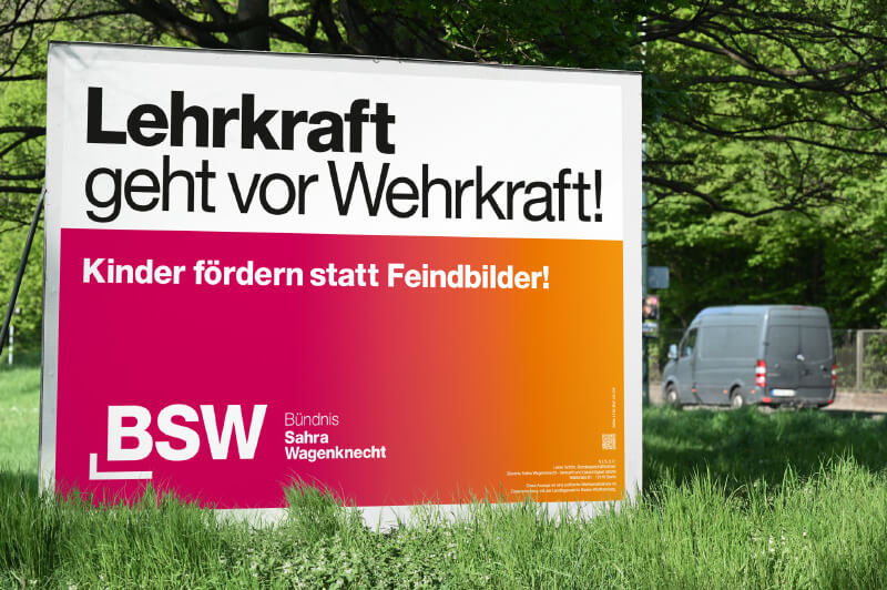 Unterstützen Sie mit Ihrer Plakatspende den Wahlkampf des BSW! Und das geht ganz bequem von zuhause: Über den folgenden Button gelangen Sie direkt in das Angebotsportal.