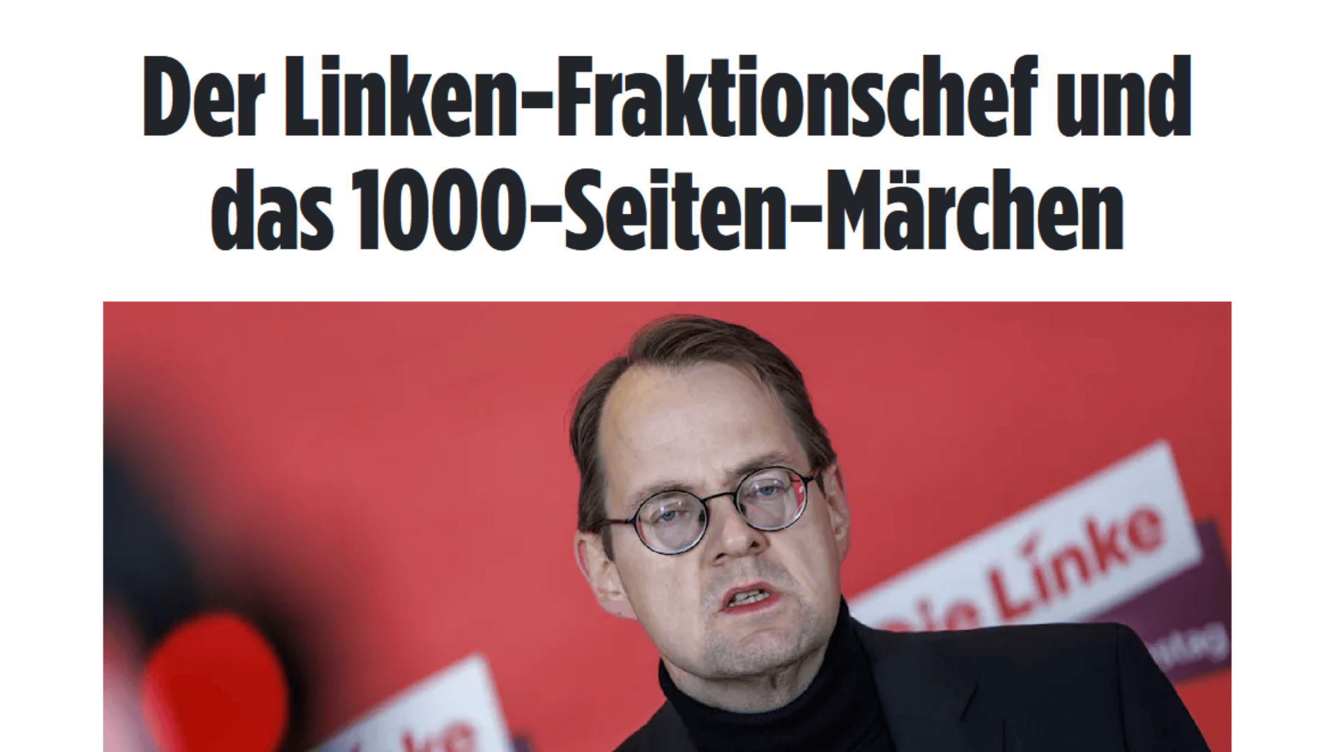 ➔Der Bundestag behauptet er habe unseren Wahleinspruch genau geprüft. Doch daran bestehen erhebliche Zweifel, die das Verfassungsgericht noch beschäftigen dürften! „Der Linken-Fraktions-Chef phantasierte eine 1000-Seiten-Stellungnahme herbei“, kritisiert unser Parteivorsitzender Fabio De Masi.